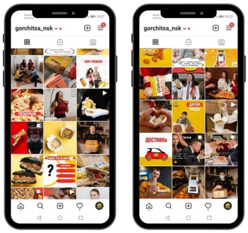 На момент обращения (декабрь 2020г) оформление у аккаунта отсутствовало, поэтому и начать было решено с него. Разработали минималистичный дизайн шаблонов постов и сторис, аватар аккаунта, хайлайтс. Сделали информативное описание в шапке профиля, наполнили актуальные сторис. Оформление разработано в цветах бренда: желтый, черный и красный.