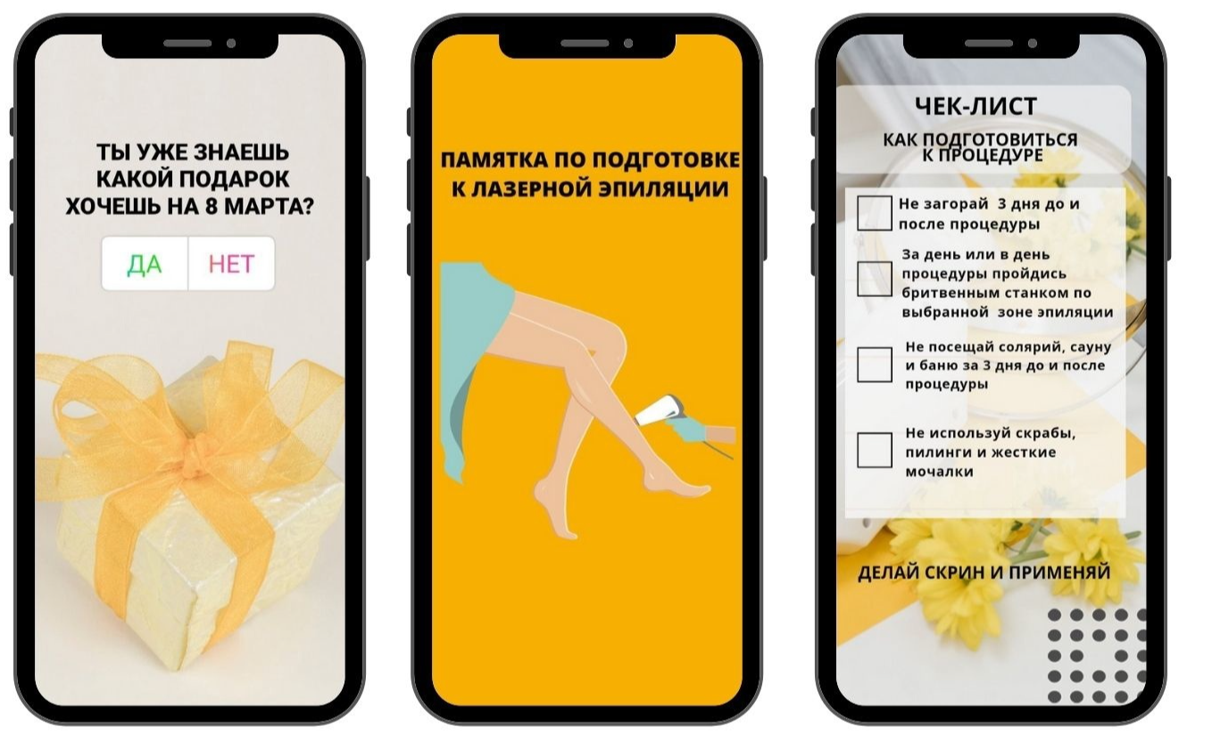Сторис идет альтернативной лентой. В ней мы публикуем услугу, отрабатываем возражение подписчиков.