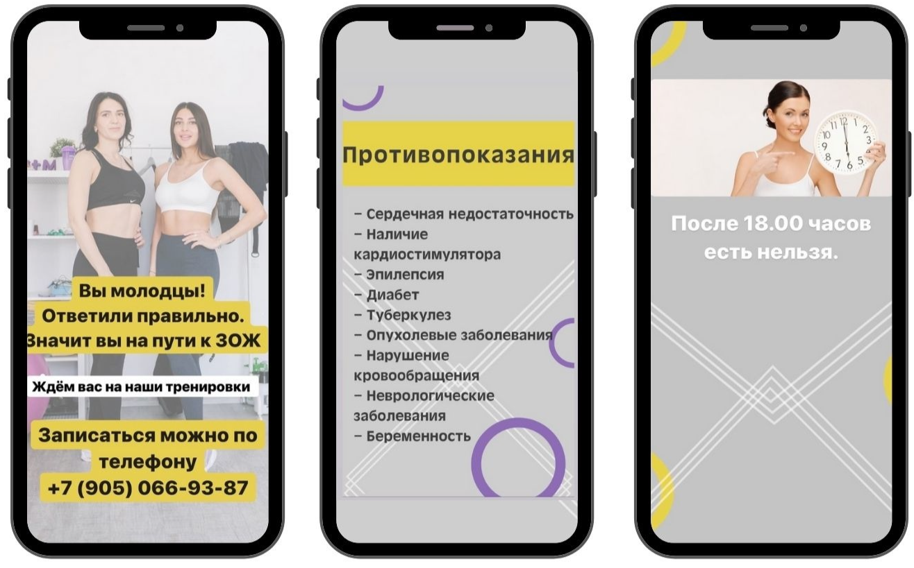 Сторис идет альтернативной лентой. В ней мы публикуем услугу, отрабатываем возражение подписчиков.⠀